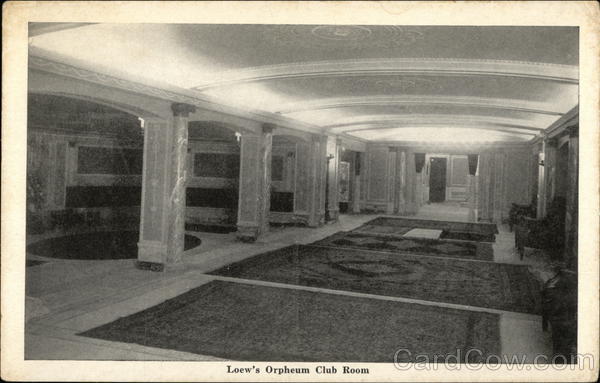 Front: Loew's Orpheum Club Room Back: Loew's Orpheum Boston, Mass. The Handsomest Theatre in the World Here