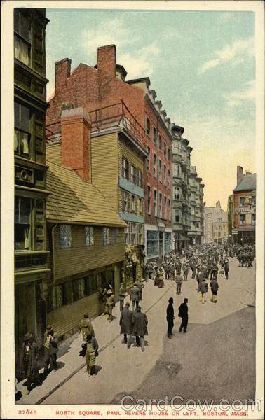 NORTH SQUARE, PAUL REVERE HOUSE ON LEFT, BOSTON, MASS.