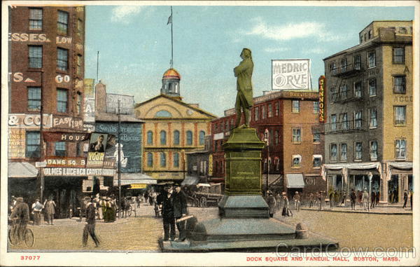 DOCK SQUARE AND FANEUIL HALL, BOSTON, MASS.