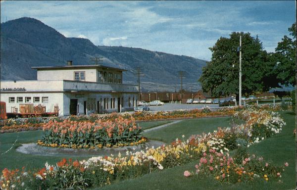 Front: KAMADES ΠΗ Back: K-205 VANCOUVER, CANADA COLOR PHOTOGRAPH AND PUBLISHED BY THE COAST PUBLISHING CO CANADIAN PACIFIC RAILWAY DEPOT AND GARDENS KAMLOOPS, B. C. COPYRIGHT KODACHROME CARD IN J. S. A. $13959-1 4¢