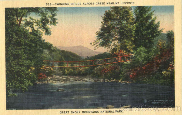 538:-SWINGING BRIDGE ACROSS CREEK NEAR MT. LECONTE GREAT SMOKY MOUNTAINS NATIONAL PARK.