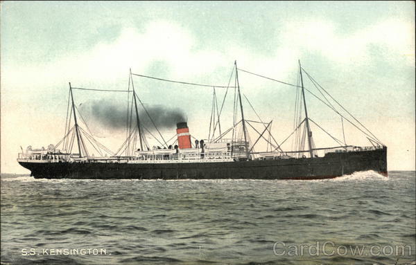 Front: ELR S.S.KENSINGTON k Back: THE ART PUBLISHING COMPANY GLASGOW THIS SPACE MAY BE USED FOR COMMUNICATION (In British Isles only.) (Post Office Regulation.) 2D. STAMP: 1D. BRITAIN.