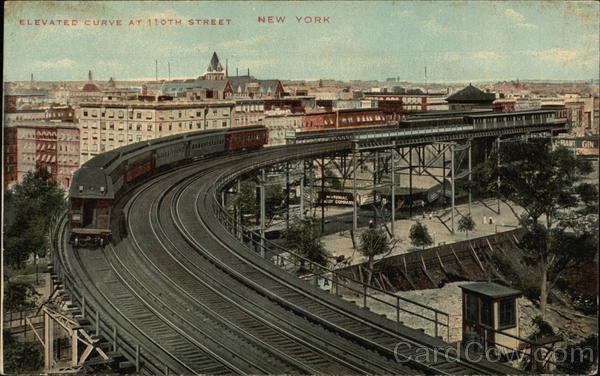 Front: ELEVATED CURVE AT 110TH STREET MERIDOS اما NEW YORK 10 NATIONAL KUIT COMPANY 1-BART GIN Back: Th POST-CARD. Theochrom Serie 68