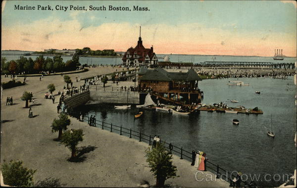 Front: Com Marine Park, City Point, South Boston, Mass. 人專 开 Back: müüch. thing?. ma BOSTON JUL22 6-30P 19MASS! ف شور ہے Planing my ге A-37366 C.T. PHOTOCHRO 350 STATION HE ADDRES Mrs. E. Dennger 40 an گے گے کا کار2 سارا 20