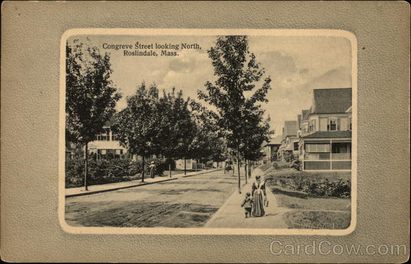 Front: Congreve Street looking North, Roslindale, Mass. Back: No. 1624. Pub, by Thomson & Thomson, Boston, Mass. Dost Card. For Correspondence. 526 6