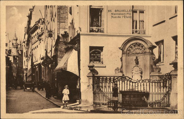 Front: Are y SUNLIGHT SAVON EVITE contrelac KURSA DE SOUVENIRS BRUXELLE EN TOUS GENR ENGL 85 BRUXELLES Manneken-Pis Rue de l'Étuve 22) (C WEN Back: Edition Librairie Centrale, 99, Bd Ad. Max, Brux. CARTE POSTALE