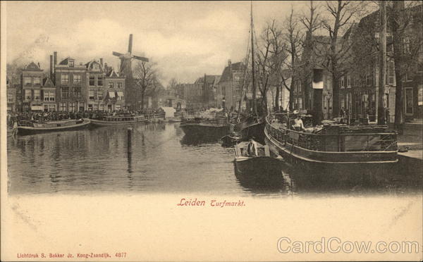 Front: Lichtdruk S. Bakker Jz. Koog-Zaandijk. 4877 Leiden Curfmarkt. Back: BRIEFKAAKT (CARTE POSTALE) ALGEMEENE POSTVEREENIGING (UNION POSTALE UNIVERSELLE) Zijde voor het adres bestemd. (Côté réservé à l'adresse).