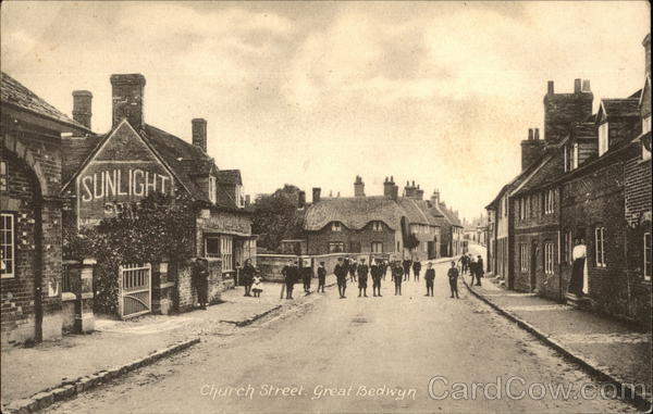 Front: SUNLIGHT LARGE Church Street. Great Bedwyn Back: Published by W, J. EVANS, The Stores, Great Bedwyn. POST CARD, This Space may be used for Communication بر Affix Half-penny Stamp.