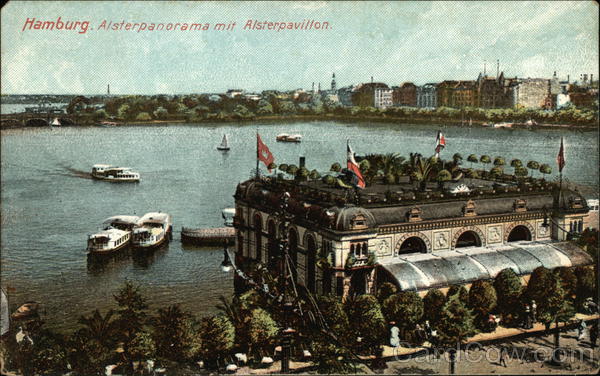 Hamburg. Alsterpanorama mit Alsterpavillon.
