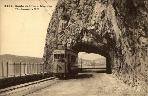 Front: 3207. Route de Nice à Monaco Un tunnel - RM LYNE Back: Rostan et Munier, Editions d'art, 19, rue Marceau, Nice CARTE POSTALE