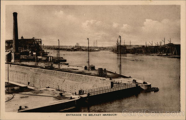 Front: ENTRANCE TO BELFAST HARBOUR KY Back: TRADE Eignas POST SERIES E-& S:td. D.&.8 MARK AFFIX GERMANY