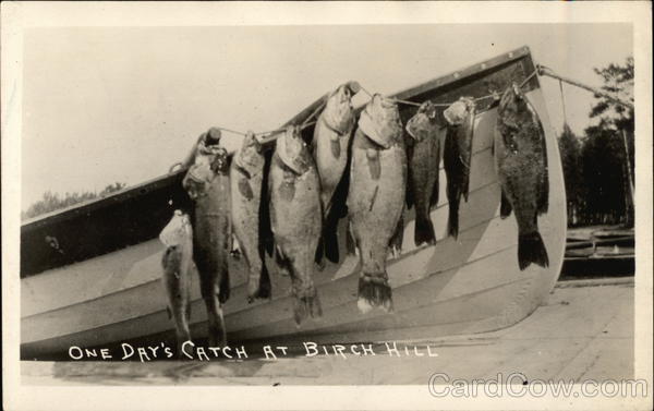 Front: ONE DAY'S CATCH AT BIRCH HILL Back: DEFENDER саи ung Look a friend Thive Einly fish and The folet man port cards made. all small monch faso. CRESCENT PHOTO CO 8341 23rd Ave. So. Minneapolis, Mina. DEFENDER
