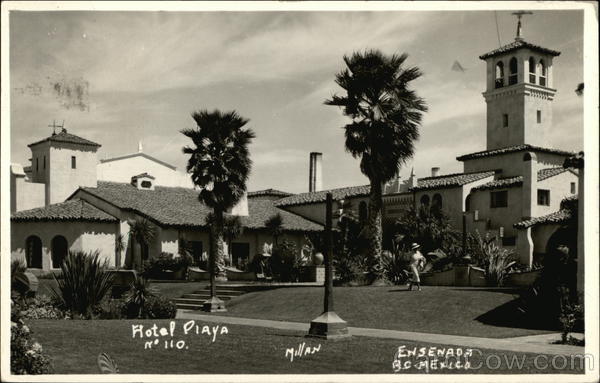 Front: MA Hotel PLAYA N° 110. MillAN ENSENADA B.C. MEXICO 0442 Back: мы trip with La треж она blay POST CARD D 50 1910 ря 1934 49 DO CORREOS OR TALLERES DE IDAD DE AY Y VALORES-MEXICO прати Ж. Шад. Wag 10 Sunshine bort New Part миг