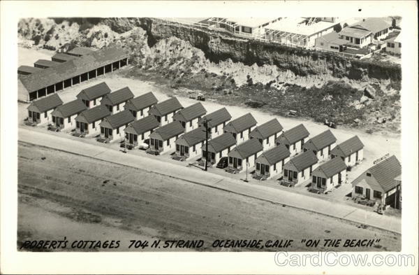 Front: LE LR 978 ROBERT'S COTTAGES 704 N. STRAND OCEANSIDE, CALIF. "ON THE BEACH" Back: THIS SPACE FOR THE ADDRESS