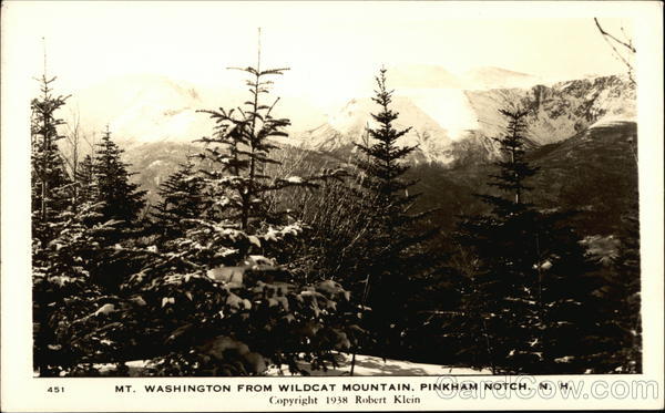 Front: 451 MT. WASHINGTON FROM WILDCAT MOUNTAIN, PINKHAM NOTCH, N. H. Copyright 1938 Robert Klein Back: BROMLEY & CO., Boston GENUINE PHOTOGRAPHS EK HERE
