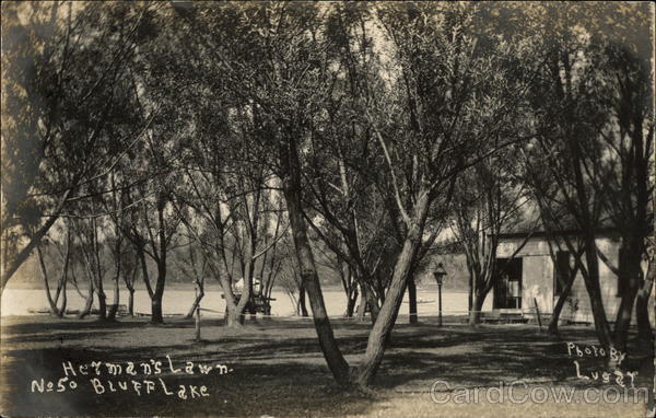 Front: Hexman's Lawn- No 5⁰ BLUFF Lake BY Рього ву Lugat Back: Bluff lake, Colorado 12- ◄◄NO AZO A 01 NAME AND ADDRESS HERE