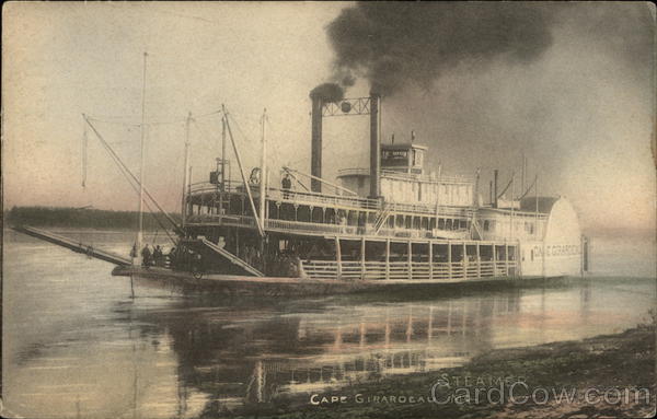 Front: STEAMER CAPE GIRARDEAU Mo CALE GIRARDEAL Back: Leaving here 1.75 d. M. Sleep? POCAT I D CAPE GIRARDEAU, FEB 644 on this side CAPE GIRARDEAU POSTAUK AMP HERE 30MESTIC MO. Miss Ruth Stedman 307 Locust St Holyoke, mass
