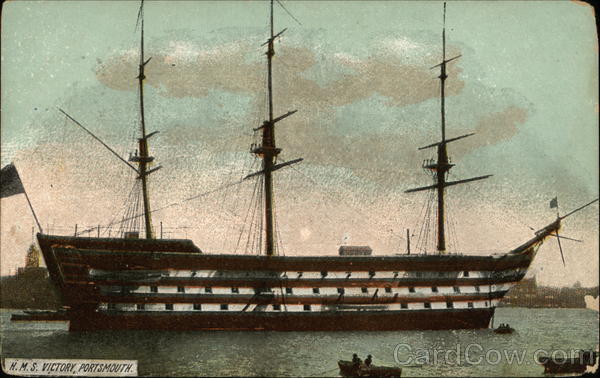 Front: H.M.S. VICTORY, PORTSMOUTH OR Back: Premier Penny Bazaars, Commercial road Portsmouth. WRITING SPACE. IN GERMANY.