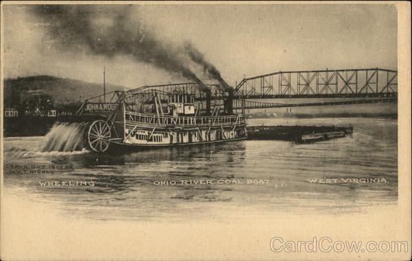 Front: COPYRIGHT 1995 RY WM.T. NICOLL JOHN A WOOD WHEELING OHIO RIVER COAL BOAT XXX WEST VIRGINIA. Back: JOHN A. WOOD 50 Domestic 1 Ct. Foreign 2 Cts. THE ALBERTYPE CO.! i BROOKLYN, N.Y.