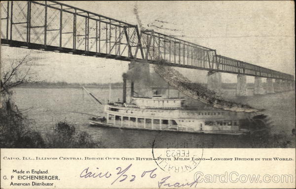 CAIRO, ILL., ILLINOIS CENTRAL BRIDGE OVER OHIO RIVER-FOUR MILES LONG--LONGEST BRIDGE IN THE WORLD.