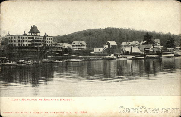 Front: ula EP 10 LAKE SUNAPEE AT SUNAPEE HARBOR. COPYRIGHT 1906 BY GEO. F. SLADE JR. PUB. LAKE SUNAPEE, N. H. "M NO. 1464 MI 11 Back: Post bard& TWO CENTS
