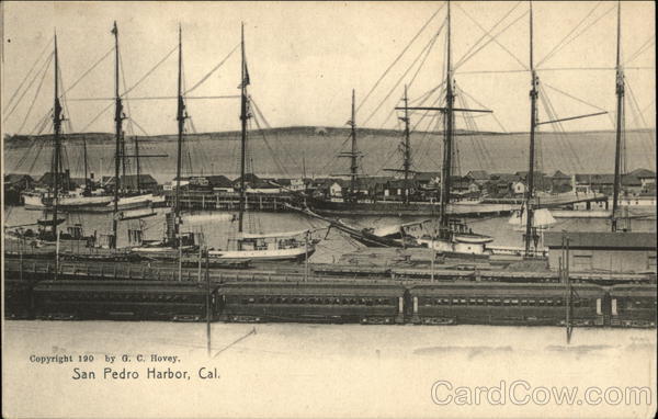 Front: Copyright 190 by G. C. Hovey. AL LARSON San Pedro Harbor, Cal. Back: (Germany.) 7700 Hovey Publisher 50 Two cents