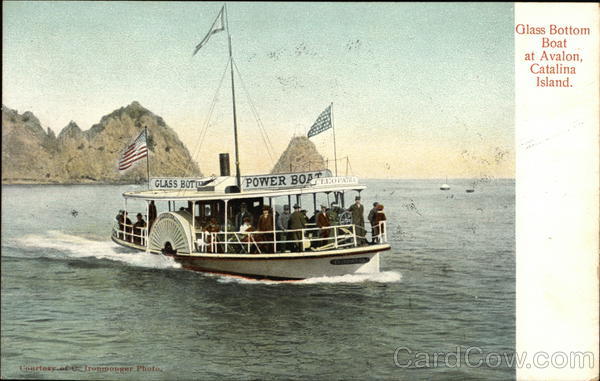 Front: GLASS BOTTE Courtesy of C. Ironmonger Photo, POWER BOAT CLEOPATRA CEIROPATRA Glass Bottom Boat at Avalon, Catalina Island. Back: M. Rieder, Publ., Los Angeles, Cal. and Leipzig. TWO CENTS