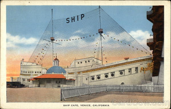 Front: LA **SE DOS CAR fiki SHIP AAAAAA 4 4 4 4 A 4 SHIP CAFE, VENICE, CALIFORNIA ^A^^ VYY SKIF CAFF Back: 5064 -MADE IN U S.A. BY E. C. KROPP CO., MILWAUKEE, WIS..