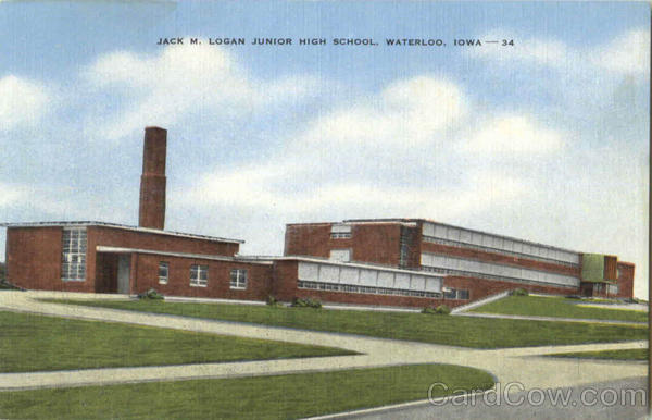 Front: JACK M. LOGAN JUNIOR HIGH SCHOOL, WATERLOO, IOWA 34 Back: COLOR 17444N -Published by Waterloo - Agency, Inc., Waterloo, Towa- Natural Color Pest Card Made in U.S. E.C. Kropp Co., Milwaukee, Wis.-HCL