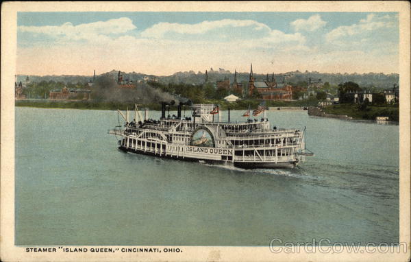 Front: AC STEAMER ISLAND QUEEN," CINCINNATI, OHIO. ISLAND QUEEN CALYY 14 Back: THE FEICKE DESCH PRINTING CO., CINCINNATI, OHIO. C.T. AMERICAN 1841 A-55052 22.02 بحث THIS SPACE FOR ADDRESS ONLY.