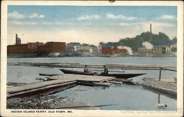 Front: INDIAN ISLAND FERRY, OLD TOWN, ME. Back: Pub. by Alexander Fraser, Old Town,, Maine. THIS SPACE MAY BE USED FOR MESSAGE. FOREIGN TWO CENTS.