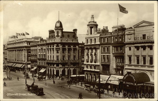 Front: CLEN wwwwwww REZHA PAPE O'Connell Street, Dublin. #1 the its dich zak SASSIDY RESTAURANT SODA FOUNTA CE LLLLEL MEN ANA CENTRAL DEXX XXXX XXX CINEMA GRAND CENTRA Back: Signal ENS LIA D&B ADDRESS ONLY
