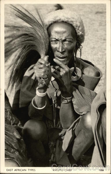 Front: EAST AFRICAN TYPES KIKUYU CHIEF 136 Back: Copyright by: S. Skulina PEGAS STUDIO Nairobi jo Edition "Africa in Pictures'