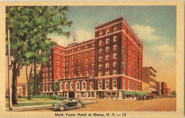 Front: WEL! Mark Twain Hotel at Elmira, N. Y.-13 Back: Published by Elmira Tobacco Co., Inc., Elmira, N. Y. Colorcraft-Made by Dexter Press, Pearl River, N. Y. 25528