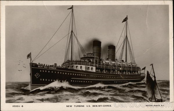 Front: 10326-6 BEN-MY-CHREE BORGD DOB DOGO REGREND NEW TURBINE S.S. BEN-MY-CHREE. ROTARY PHOTO, E.C Back: 1908-1920 ROTARY PHOTOGRAPHIC SERIES. BEN MY CHREE (3) 35- in England.