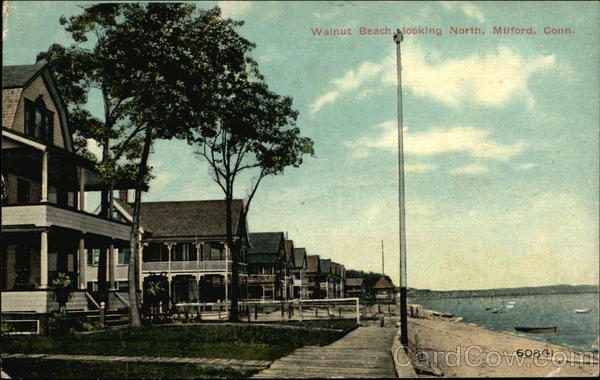 Front: Walnut Beach looking North, Milford, Conn. 60841 Back: The cottage nearest the left is ours With love Beatrice ORD.COM #71 بھی Miss Gertrude Lynch 25 Easton Ave. Waterbury, Conn.