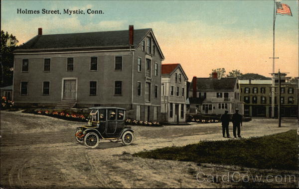 Front: *** Holmes Street, Mystic, Conn. M Back: PUBLISHED BY P. HAMMACHER, MYSTIC, CONN. Too R-34658 رہا THIS SPACE FOR ADDRESS ONLY