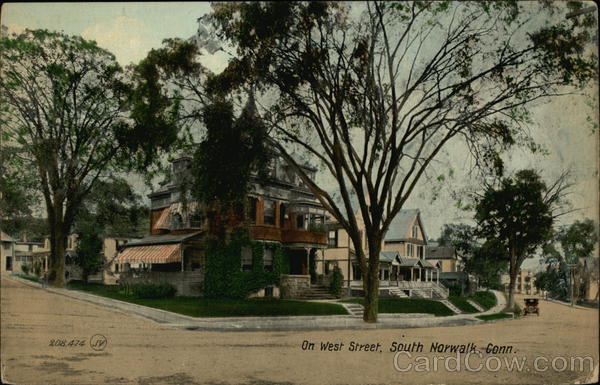 Front: 208.474 JV) On West Street, South Norwalk, Conn. Back: Published by the Valentine & Sons' Publishing Co. New York and Boston. THROUGHOUT THE WORLD. V&SONS FAMOUS CARD. ہرے