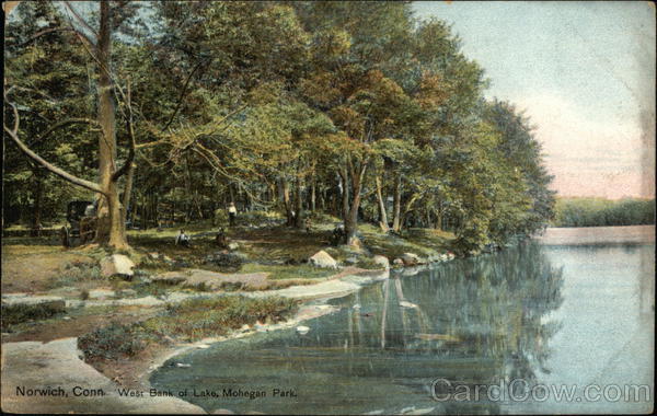 Norwich, Conn. West Bank of Lake, Mohegan Park.