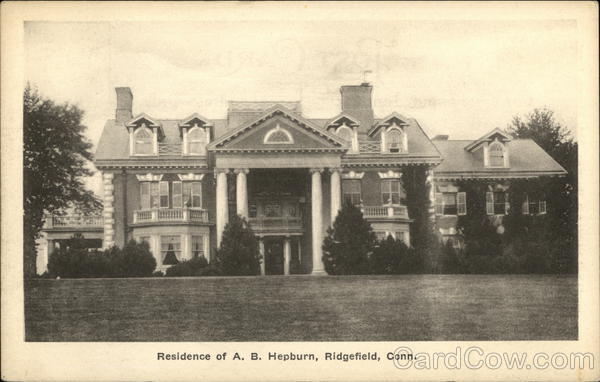Front: Residence of A. B. Hepburn, Ridgefield, Conn. Back: Published by Morris Berman, New Haven, Conn. POST CARD, HERE