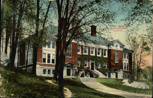 Front: HIGH SCHOO STAMFORD, CONN. Back: Publised by the New York & Eastern News Company, New Haven, Conn. TRADE SEP 13 1912 4 G 13 Vist: Land 6-30P CONN MARK 9. mar donn M' look موران اسوج Caroline Oddy 169 Hally fl Bridgefial/- Conn
