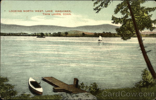 Front: LOOKING NORTH WEST, LAKE WASHINEE, TWIN LAKES, CONN. S Back: The Canaan Printing Co. Canaan, Conn. J- Cosm Stamp