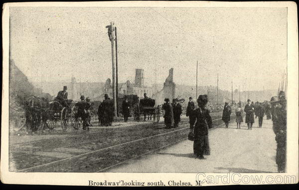 Front: FI Broadway looking south, Chelsea, M 431 Back: Published by The Metropolitan News Co., Boston. 0.0000 FOR CORRESPONDENCE ONLY SOO TWO CENTS