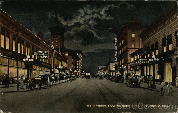 MAIN STREET, LOOKING NORTH, BY NIGHT, PUEBLO, COLO.