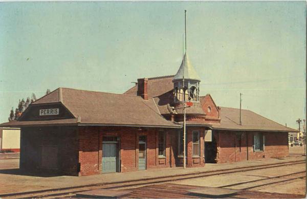 | This historic station was built in 1886 by the California Southern Railway, predecessor to the Santa Fe Railway, which built the original transcontinental link between San Diego and the East through Perris. Perris, laid out in 1886, derived its name from Fred T. Perris, chief Engineer for the California Southern Railway. Perris is the home of the Orange Empire Trolley Museum, and its collection of over 50 pieces of historic electric railway equipment. |