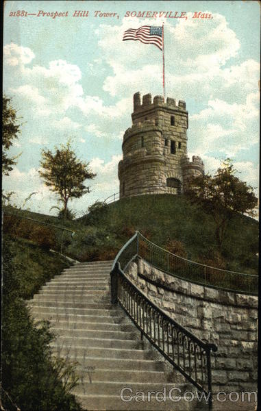 Front: 21881-Prospect Hill Tower, SOMERVILLE, Mass. Back: Souvenir Post Card Co., New York Printed in Germany. ERV This space may be used fer-PM MAY 14 SOM 19 09 here all MASS göb & pretty Fright. LB D 25115 Mis Alice Per Neinfields N H