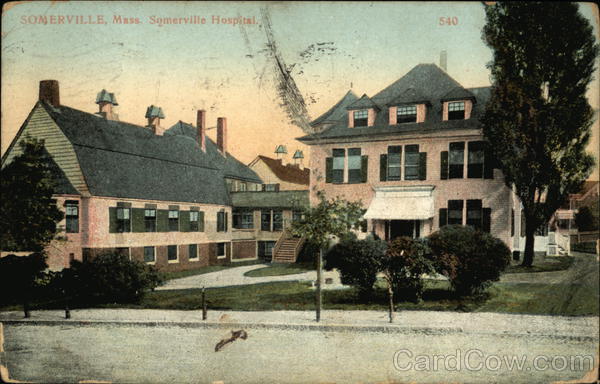 Front: SOMERVILLE, Mass. Somerville Hospital. 540 Back: Mason Bros. & Co., Boston, Mass. From V. B. body Happy 2 every JUN 27 5-30P -U CHARLESTOWN STATION 38 Mis Lizzie Chase Jackson St. Middleboro. 1903-14-1 CONFCEN mass