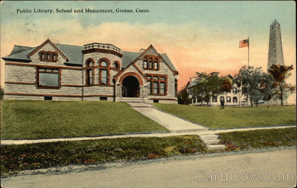 Public Library, School and Monument, Groton, Conn.