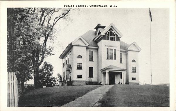 Front: Public School, Greenville, N.H. !!!! *** Back: FAIRBANKS CARD COMPANY 14 HIGH STREET, BROOKLINE. MASS. کی MADE IN U.S.A.