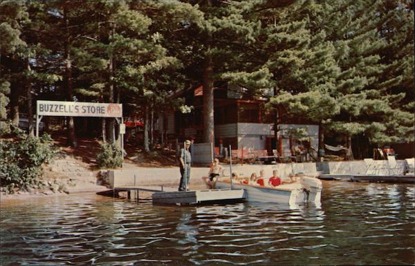 Front: SO BUZZELL'S STORE 23, Back: BUZZELL'S GROVE Kingston, Lake Kingston, N. H. Area Code-603-642-5523 Cottages and Trailer Park PUB. BY: WAKEFIELD TRADING CO., P. O. BOX 13, WAKEFIELD, MASS. asterchiame 1.50 K-14828